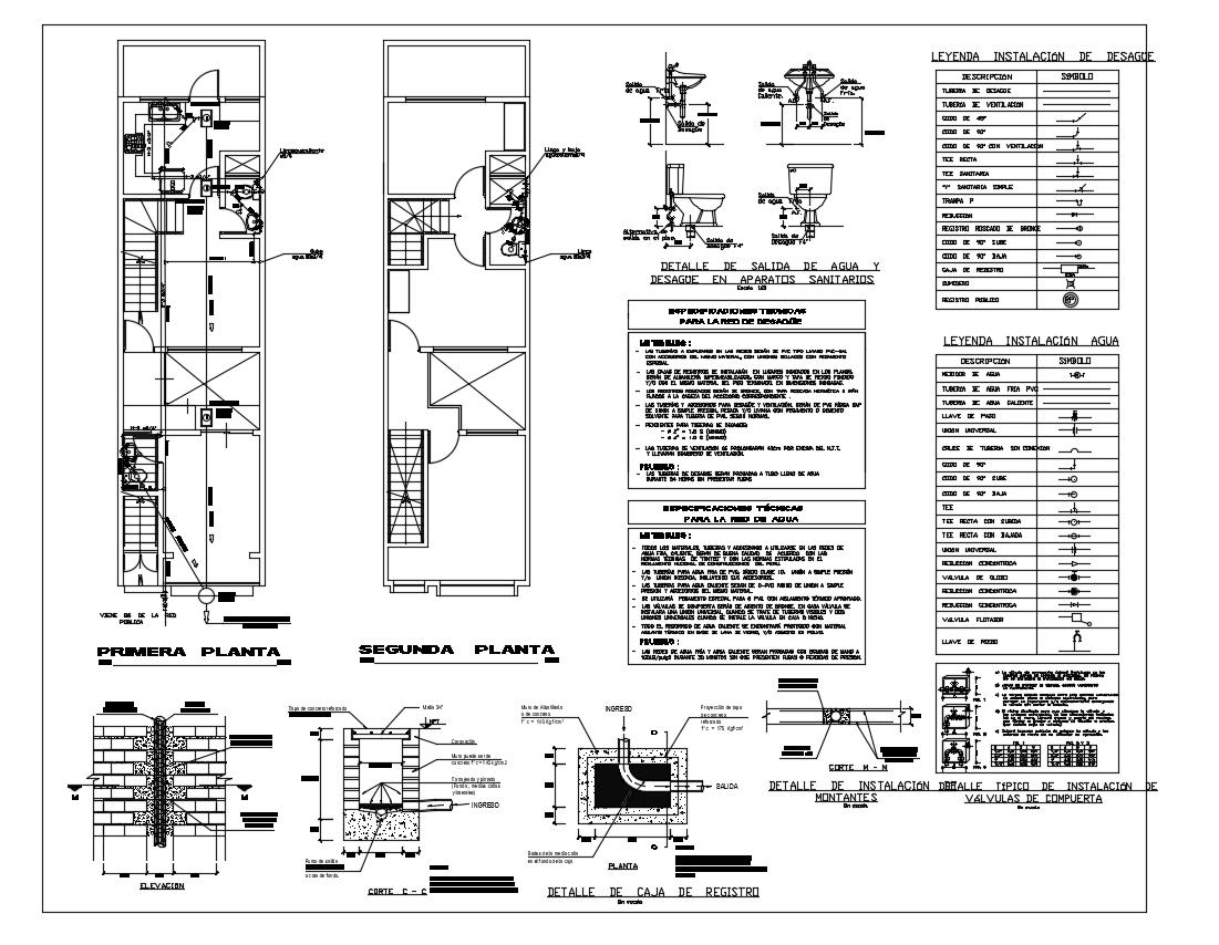 Sanitary installation view of single family house dwg file in plan with view of area view with wall,Washing area view with wash tub and drain line view with single pipe line with sanitary installation, legend and detail with necessary dimension.