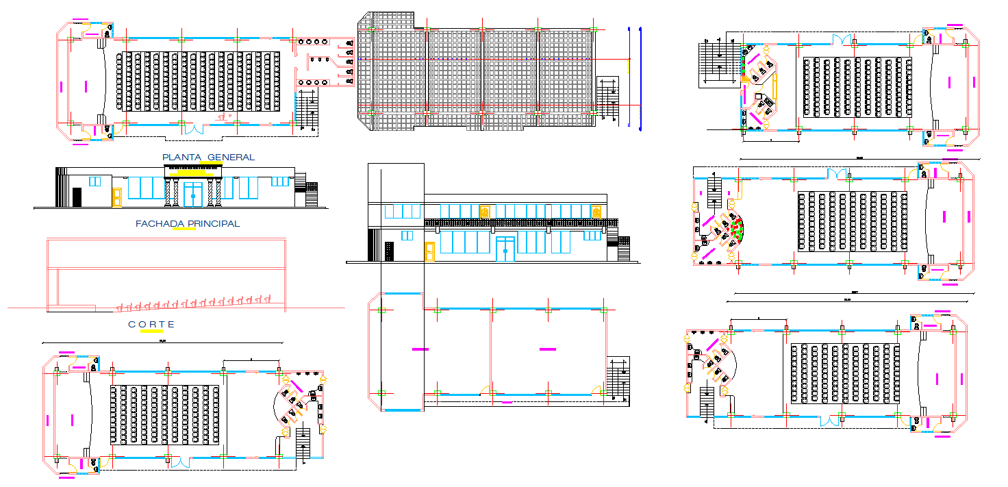 Auditorium for school project DWG, Auditorium for school project Download file, Auditorium for school project Design plan. The audience in a modern theatre are usually separated from the performers by the proscenium arch, although other types of stage are common.