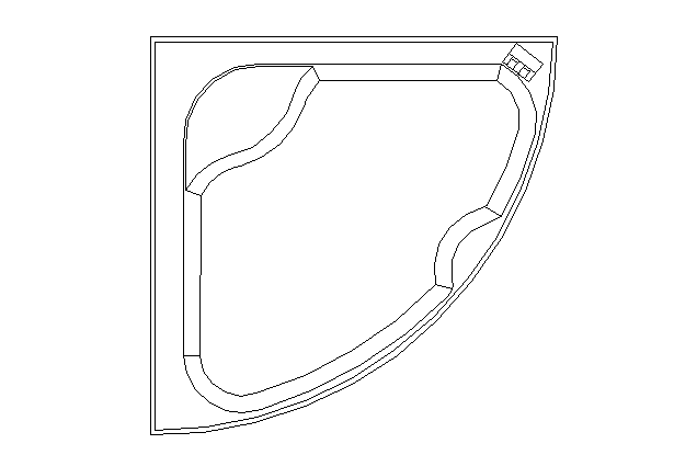 Bath tub top view details, irregular shape of bath tub design, complete 2d detail