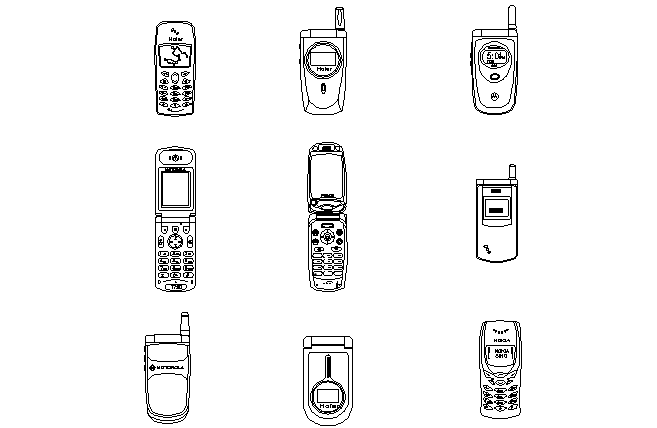 Mobile phones detailing, here there are several phones detailing in 2d auto cad format