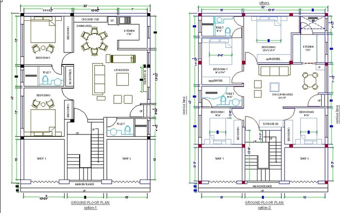This is a 2d house floorplan.It is about 30X50 .It has two bed rooms with attached bathrooms and a big kitchen.