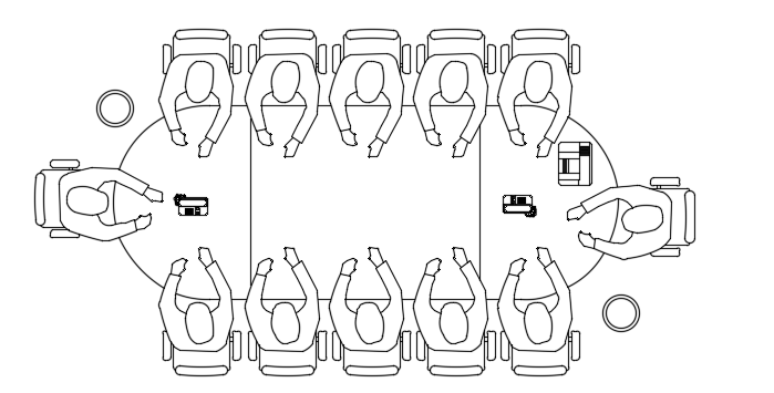 Office conference table top view details, here there is top view detail of a office table and chair details, human figure detailing in auto cad format
