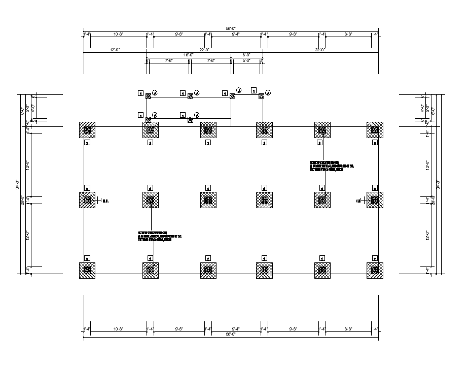 Foundation detail plan layout autocad file, top elevation detail, footing detail, diemsnion detail, hatching detail, foundation row and column detail, Reinforcement in tension and compression zone detail, concrete masonry detail, spacing detail, etc.
