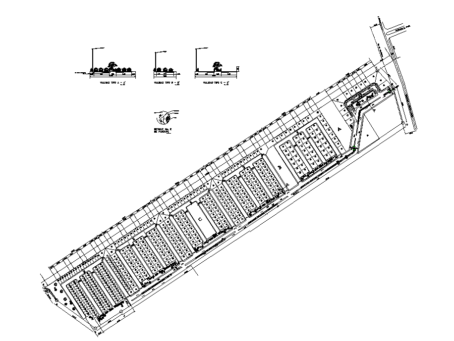 Flat housing detail elevation and section layout dwg file, dimensions detail, top elevation detail, landscaping trees detail, road detail, section line detail, hidden line detail, footpath detail, section A-A' detail, section B-B'detail, section C-C'detail, compound wall detail, etc.