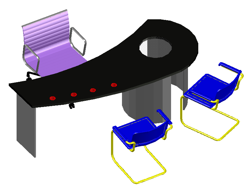 A table is a form of furniture with a flat horizontal upper surface used to support objects, for storage, show, and/or manipulation. Office 3D table and Chair Design DWG.