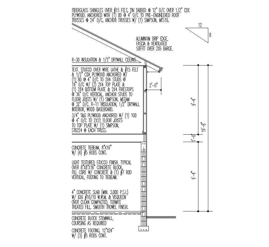 Detail wall section 2d view layout autocad file, concrete tie-beam detail, naming detail, steel bracket detail, nut bolt detail, reinforcement detail in tension and compression zone detail, cut out detail, concrete slab detail, footing detail, ceiling detail, floor detail, roof detail, etc.