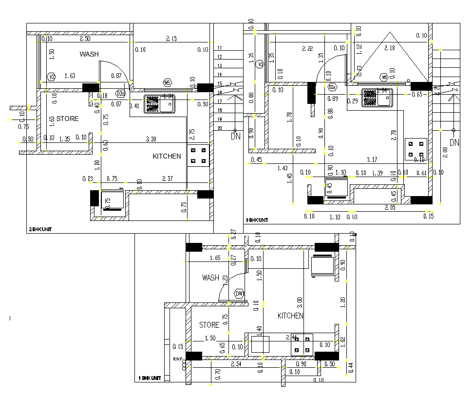 Different building structure detail layout plan, plan view detail, hatching detail, wall detail, flooring detail, staircase detail, cut out detail, dimension detail, room detail, toilet and bathroom detail, kitchen detail, room detail, room dimension detail, etc.