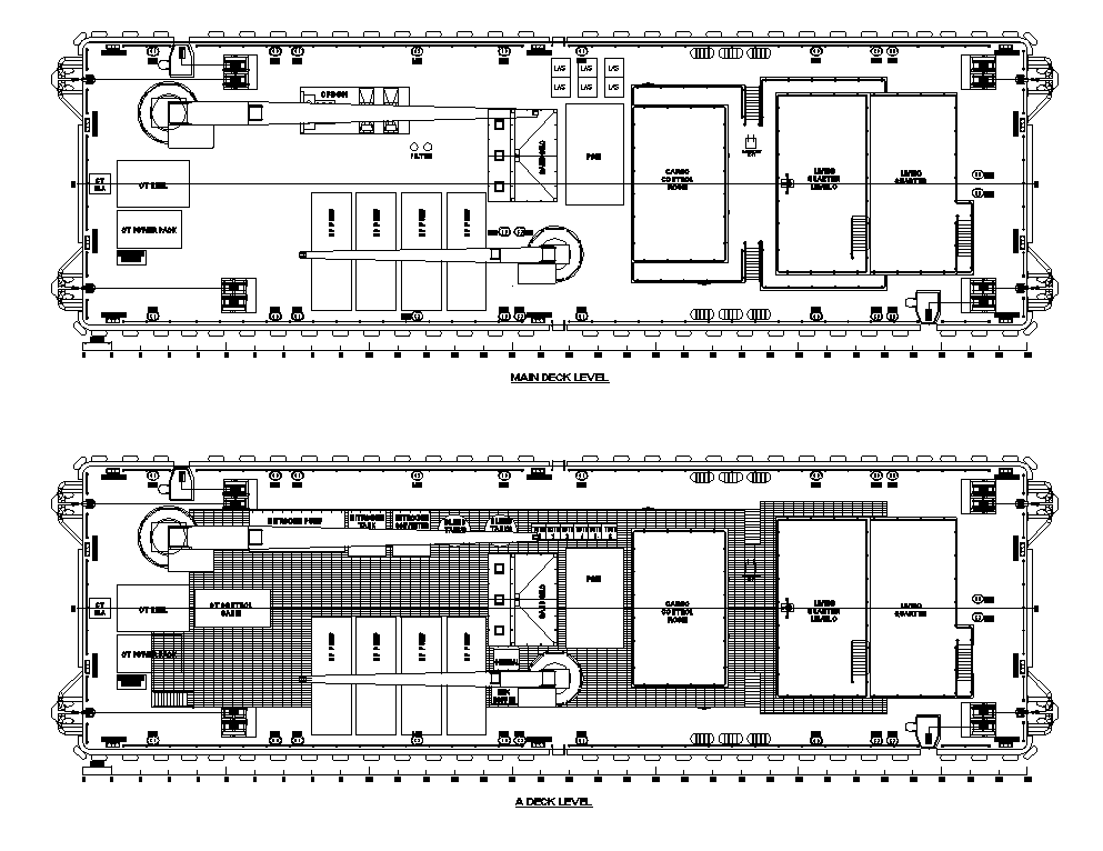 Co-operate building plan 2d view autocad file, wall detail, floor level detail, deck level detail, stair-case detail, door and window detail, dimension detail, furniture detail, hatching detail, main level detail, etc.