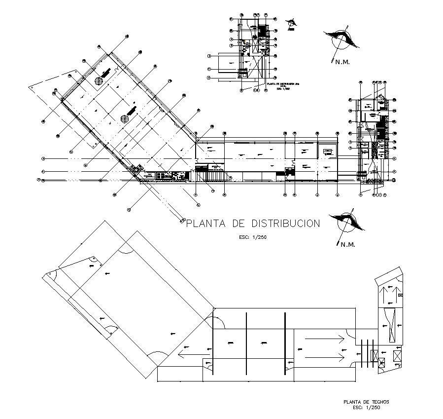 Detail building area plan 2d view layout file, plan view detail, numbering detail, north direction detail, door detail, hidden line detail, line drawing detail, scale 1:250 detail, etc.