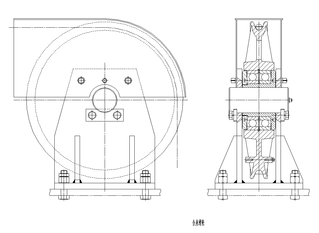 Pulley CAD machinery 2d view layout autocad file, hidden line detail, cross-section line detail, nut bolt required for joints and connection detail, hatching detail, metallic structure detail, top elevation detail, front elevation detail, etc.