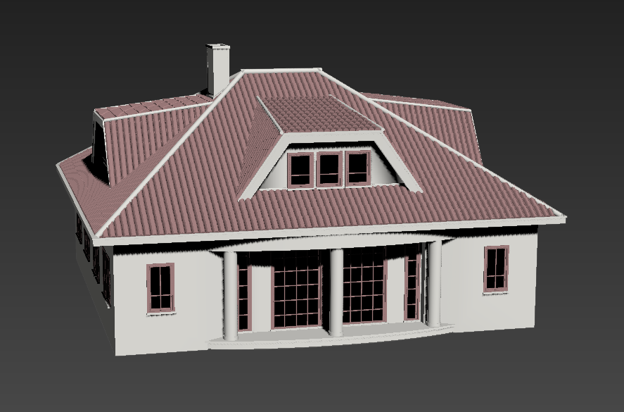 3d model of residential housing building 3d max file, roofing detail, door and window detail, flooring detail, coloring detail, column detail, chimney detail, hatching detail, front elevation detail, etc.