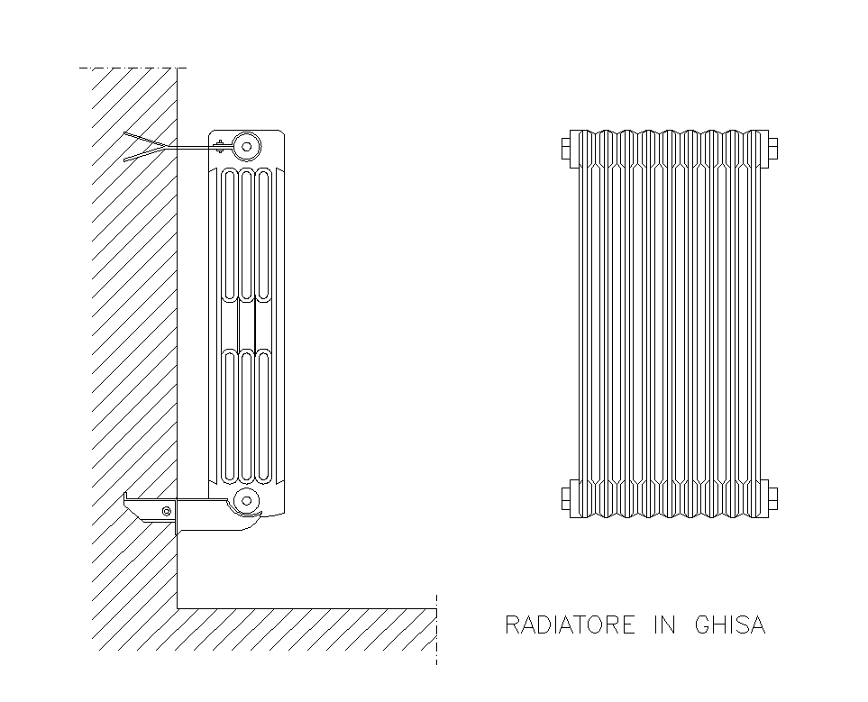 Cast-iron radiator detail elevation 2d view layout file
