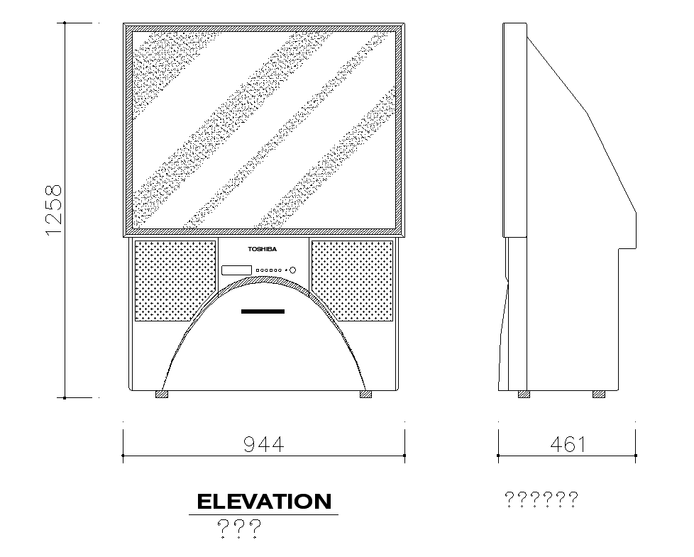 Television Detail CAD block layout autocad file, front elevation detail, height detail, width detail, glass screen detail, button and switch detail, side elevation detail, line drawing detail, dimension detail, etc.
