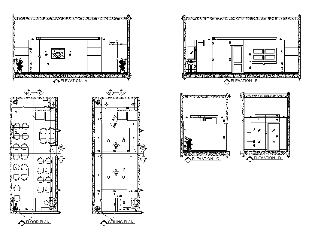 Restaurant building floor plan detail elevation and plan layout file