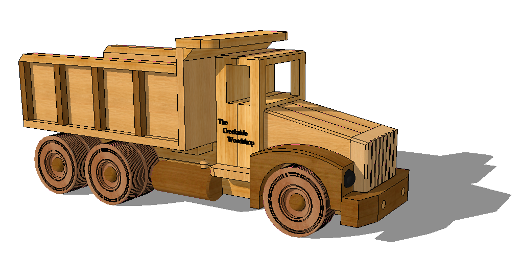 Toy truck detail 3d model layout sketch-up file, side elevation detail, wheels detail, trolley detail, wooden structure detail, hatching detail, door and window detail, headlight detail, gearbox detail, etc.