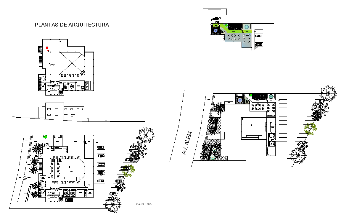 Detail 2d view of Hotel building detail plan autocad file, plan view detail, road detail, parking place detail, wall detail, landscaping trees detail, furniture detail, front elevation detail, door and window detail, flooring detail, road detail, staircase detail, hatching detail, etc.