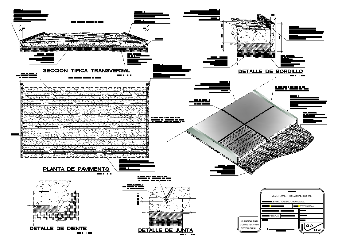 Pavement CAD structure detail elevation and section 2d view autocad file, section line detail, dimension detail, naming detail, concrete masonry detail, hatching detail, cut out detail, isometric view detail, tooth detail, etc.