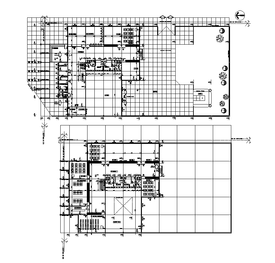 Education building detail plan layout dwg file, flooring detail, wall detail, dimension detail, landscaping trees detail, staircase detail, floor level detail, hatching detail, furniture detail, door and window detail, north direction detail, etc.