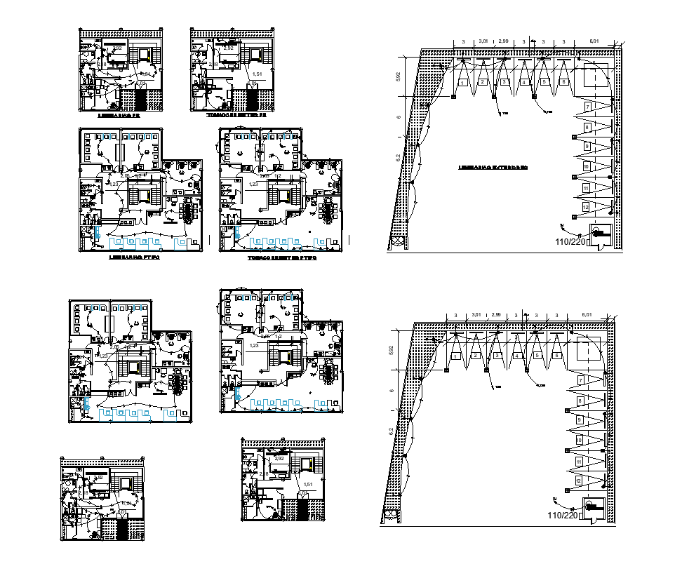 Electrical installations in the office 2d view layout file, floor level detail, electric wire detail, door and window detail, wall detail, flooring detail, dimension detail, staircase detail, furniture detail, cut out detail, plug and switch detail, etc.