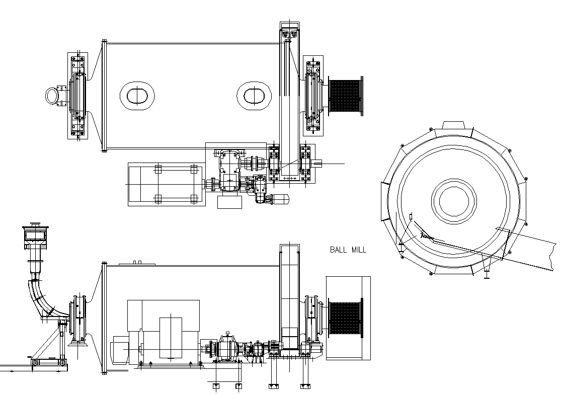 Mini-mill detail industrial plan 2d view layout file, plan view detail, electrical motor detail, ball mill detail, wall detail, top elevation detail, numbering detail, plan view detail, fastners detail, etc.