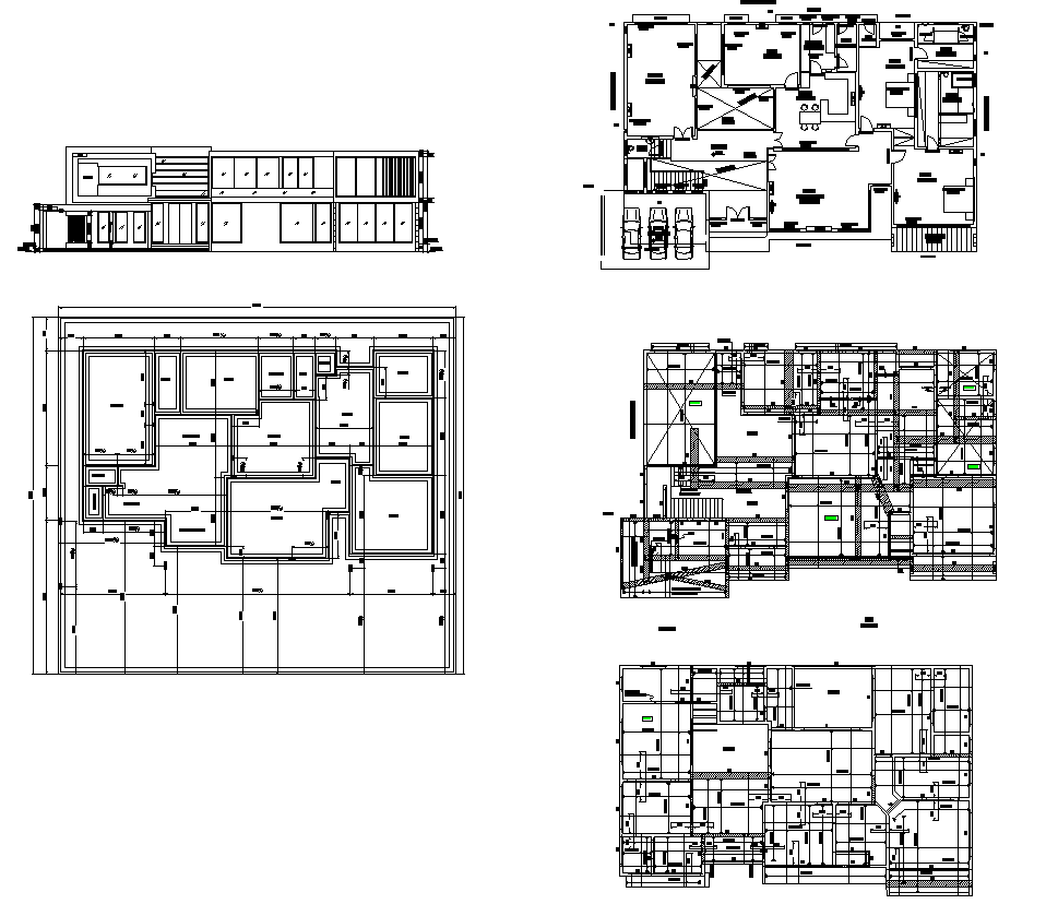 Office structural building detail elevation and section 2d view layout file, plan view detail, wall detail, dimension detail, hatching detail, floor level detail, door and window detail, parking place detail, flooring detail, front elevation detail, staircase detail, furniture detail, hidden line detail, etc.