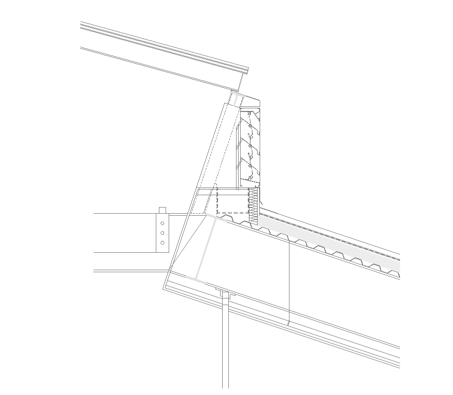 Roof section detail structure 2d view layout file, section detail, nut bolt required for joints and connection detail, hatching detail, hidden line detail, wall detail, steel bracket detail, reinforcement detail, roofing material detail, isometric view detail, wall finishing detail, etc.
