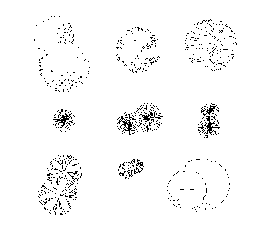 Landscaping plants detail 2d view elevation layout autocad file, grass detail, levees detail, top elevation detail, flower detail, line drawing detail, not to scale drawing detail, etc.