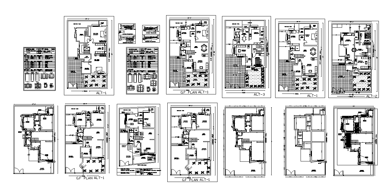 Bungalow building CAD structure detail plan 2d view dwg file, ground floor plan detail, floor level detail, wall detail, furniture detail, ground detail, landscaping plants detail, wall and flooring detail, door and window detail, specification detail, staircase detail, bedroom detail, living room detail, toilet and bathroom detail, dimension detail, bed detail, table and chair detail, vent detail, etc.