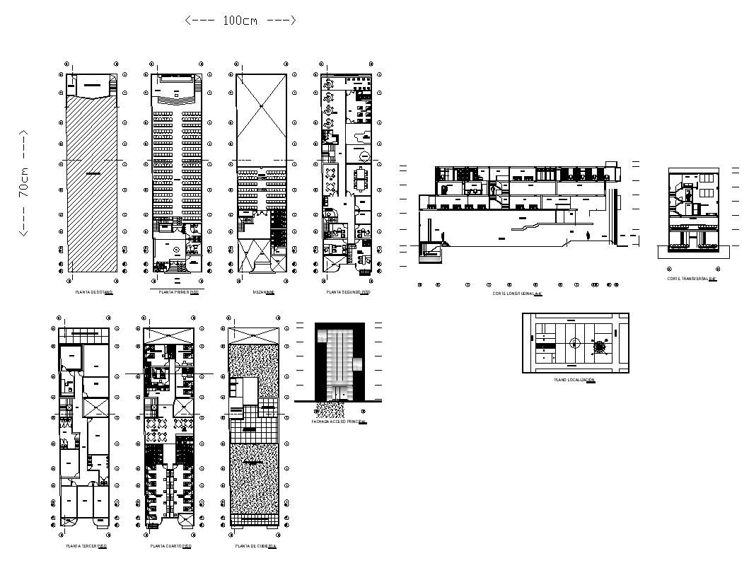 Hotel and restaurant detail section and plan view layout file, wall detail, terrace plan detail, furniture detail, landscaping plants detail, door and window detail, room detail, floor level detail, section line detail, hatching detail, staircase detail, elevator detail, flooring detail, dimension detail, sanitary toilet detail, etc.