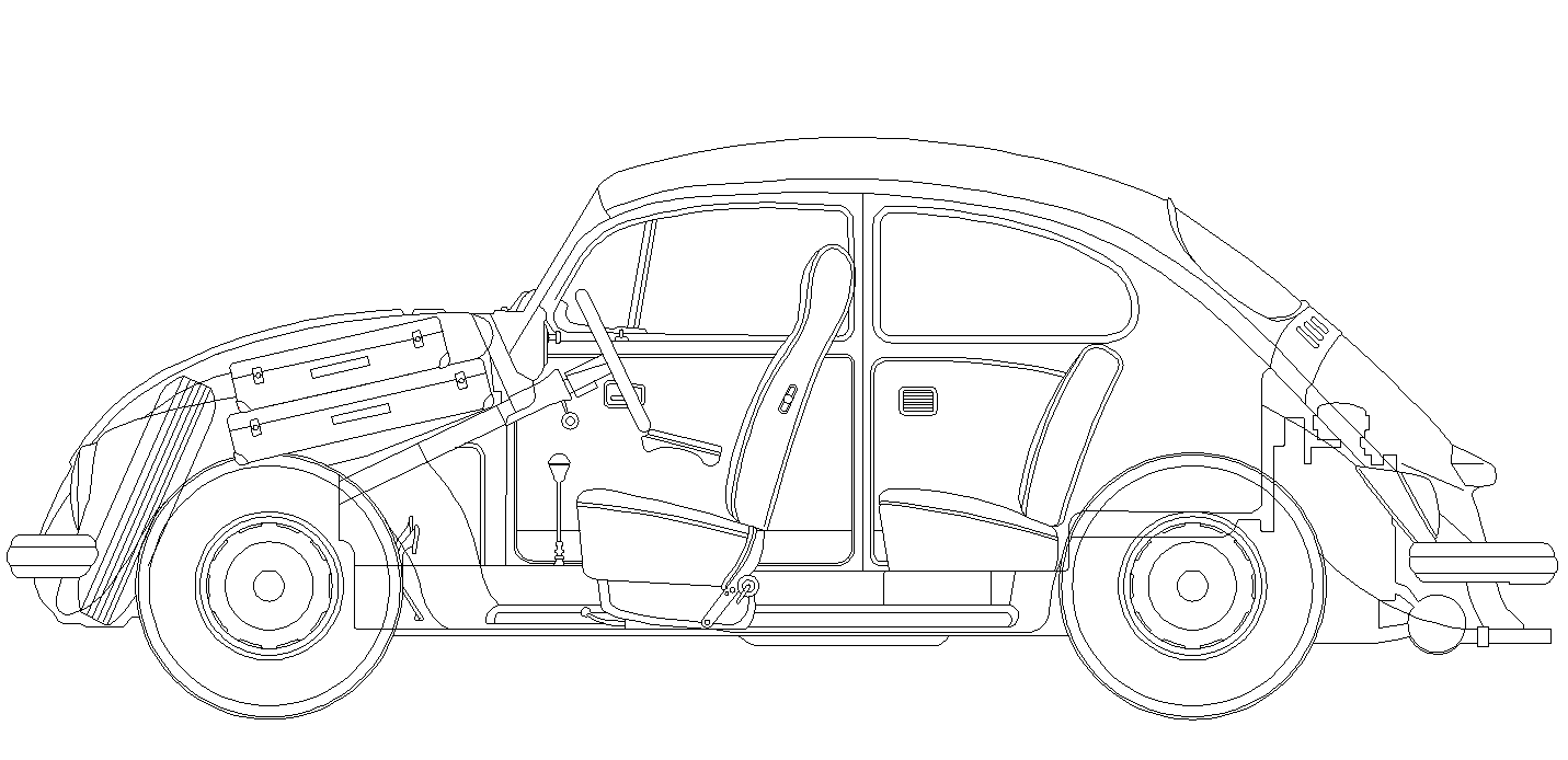 Detail Car CAD block 2d view layout autocad file, side elevation detail, door and window detail, steering wheel detail, seat detail, clutch detail, wheels detail, door handle detail, breaks detail, line drawing detail, headlight detail, not to scale drawing, etc.