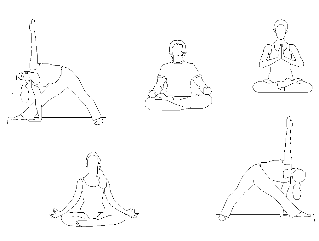 People practicing Yoga detail 2d view layout CAD blocks autocad file