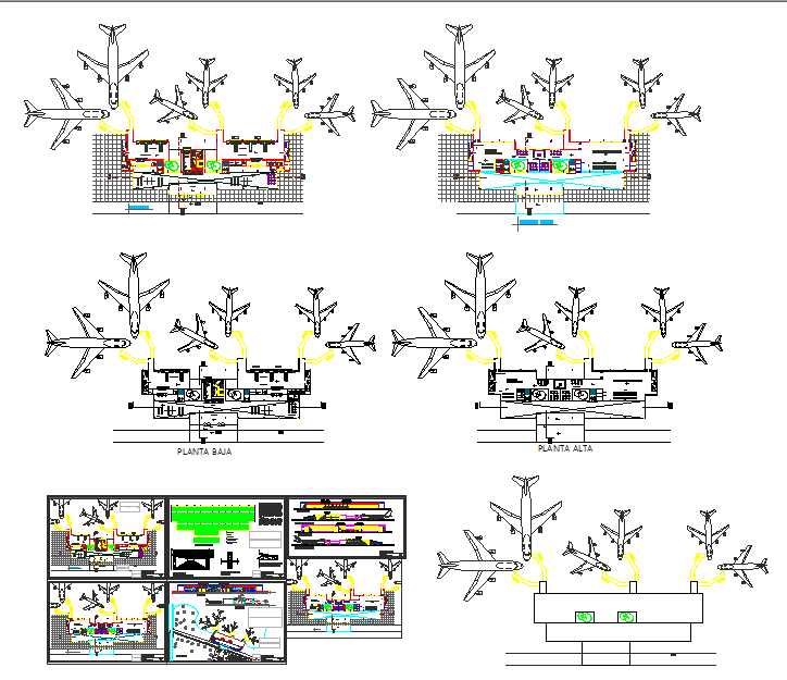 The buildings that provide access to the airplanes are typically called concourses.International airport lay-out plan DWG, International airport lay-out plan Design .