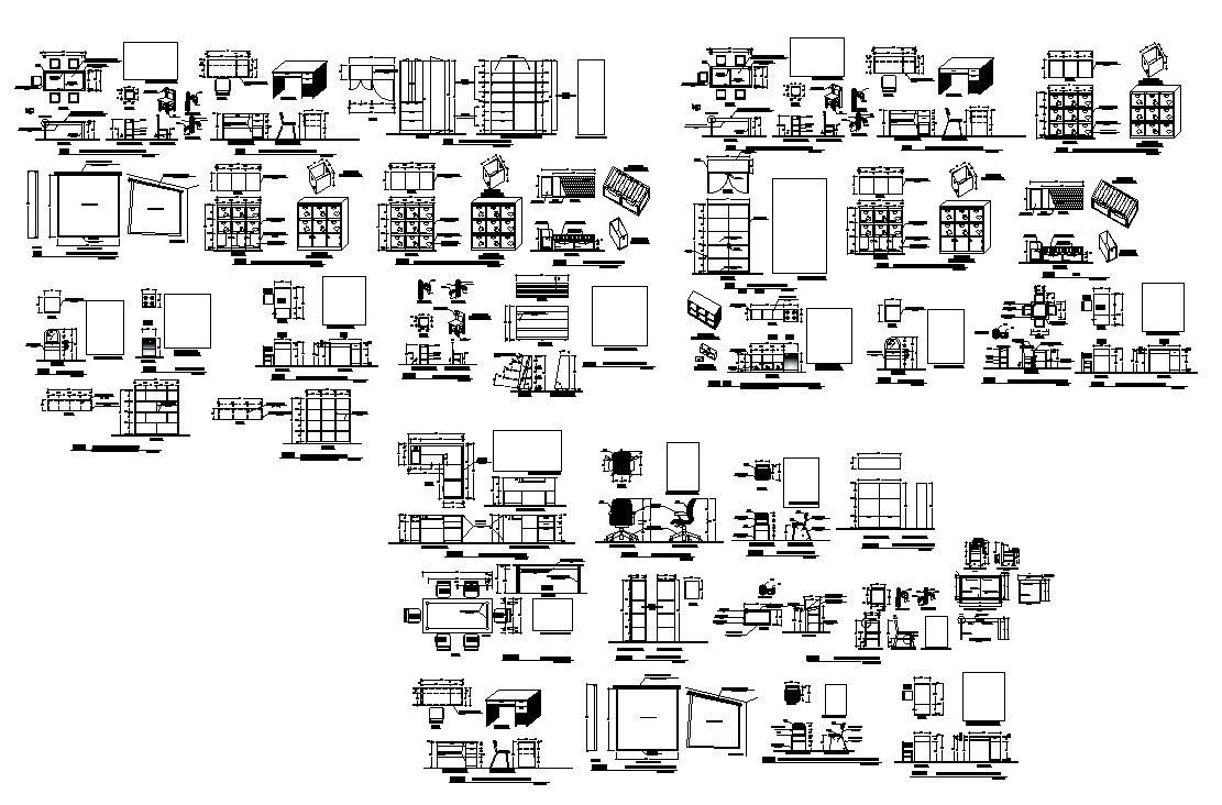 Furniture and other CAD block detail 2d view layout autocad file, dining table detail, isometric view detail, wooden material structure, dimension detail, sofa-set detail, ward-robe furniture detail, namings detail, cabinet detail, etc.
