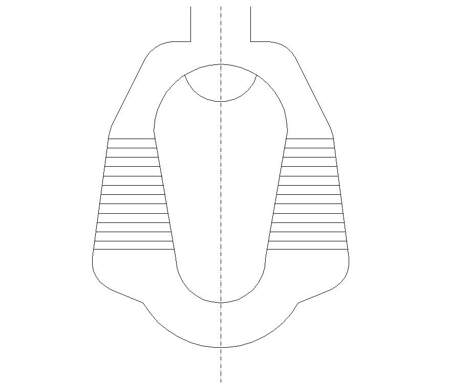 Sanitary toilet detail CAD block layout file in autocad format, top elevation detail, line drawing, ceramic material structure, center line detail, drain hole detail, not to scale drawing, filleted edges detail, etc.