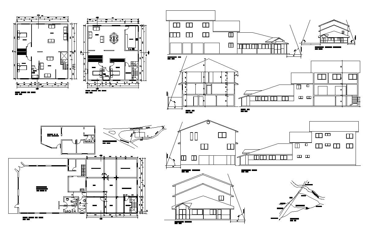 Building structure detail plan and elevation 2d view CAD construction block autocad file, plan view detail, RCC structure, floor level detail, door and window detail, sanitary toilet detail, leveling detail, roofing structure detail, furniture detail, scale detail, numberings detail, dimension detail, staircase detail, front elevation detail, side elevation detail, rear elevation detail, etc.