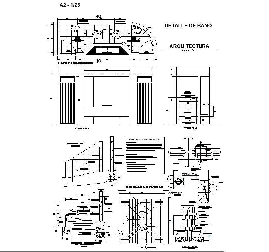 Sanitary toilet and stair structure detail 2d view layout file in autocad format, plan view detail, section line detail, door and vent detail, sanitary toilet detail, dimension detail, scale 1:25 detail, section detail, specification detail, stair riser and thread detail, reinforced concrete cement (RCC) structure, foundation detail, etc.