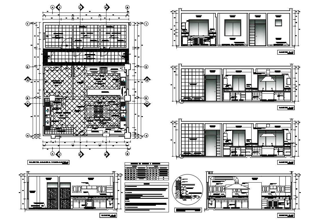 House kitchen elevation, section, plan and furniture layout plan details dwg file