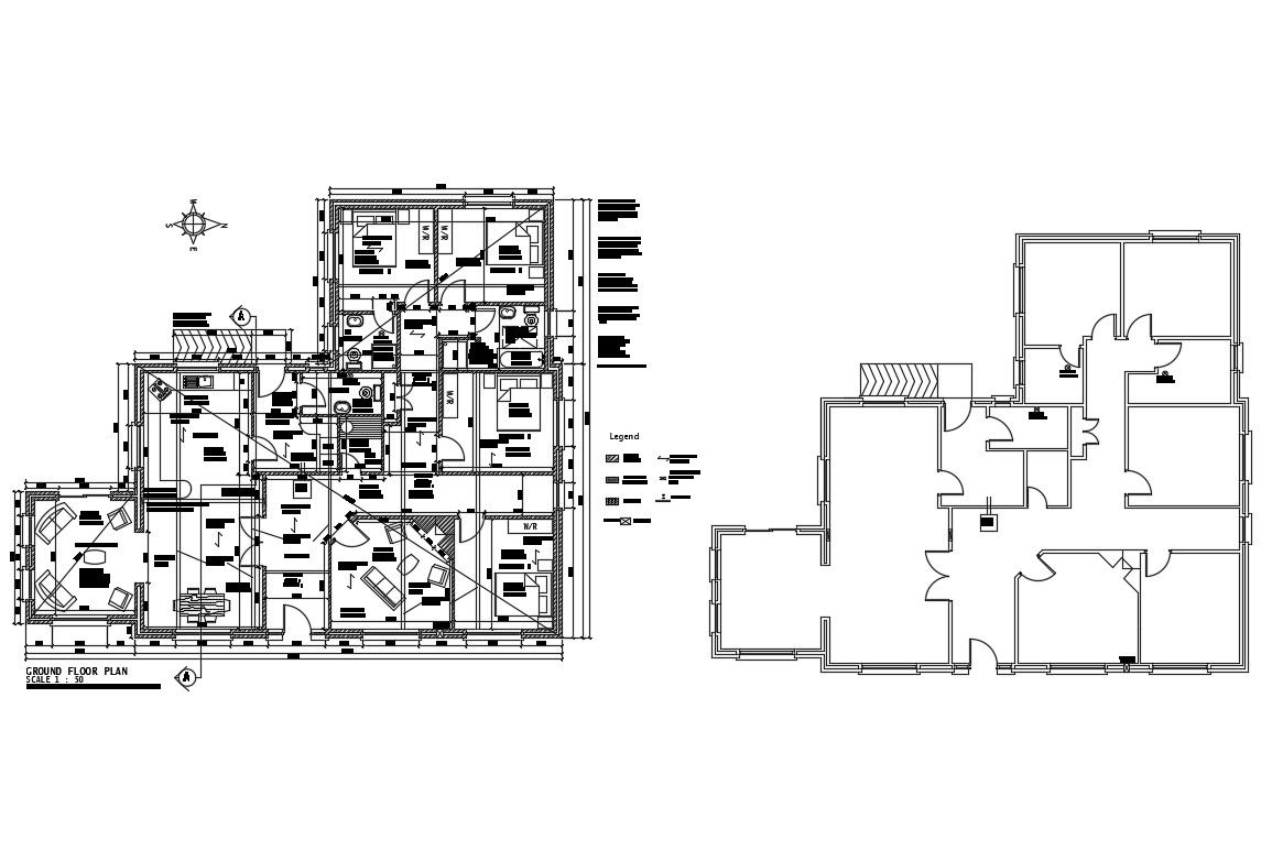 Ground floor and framing plan details of one family house cad drawing details dwg file
