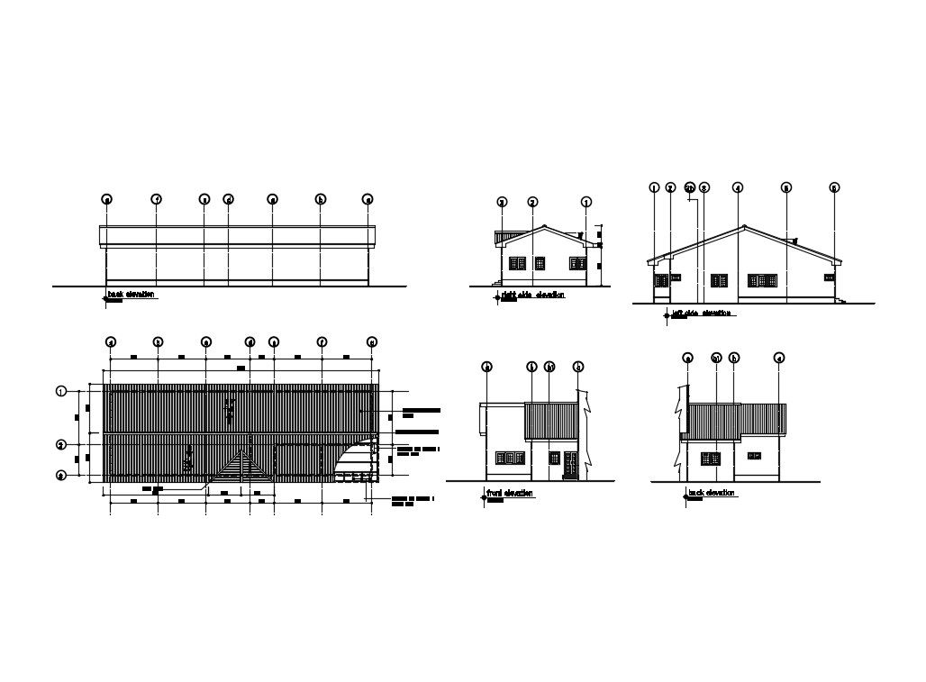 Church office all sided elevation and framing plan details dwg file