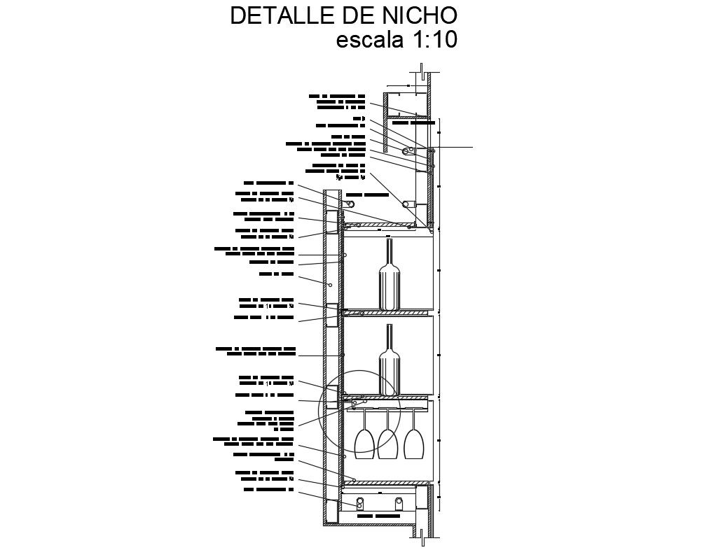 Bar store cut constructive structure cad drawing details that includes a detailed view of bar counter section details, wall construction, memory of materials, footings details, column view, beam construction, covers closure type, soil burried wall closure , exterior solera, holes and much more of bar details.