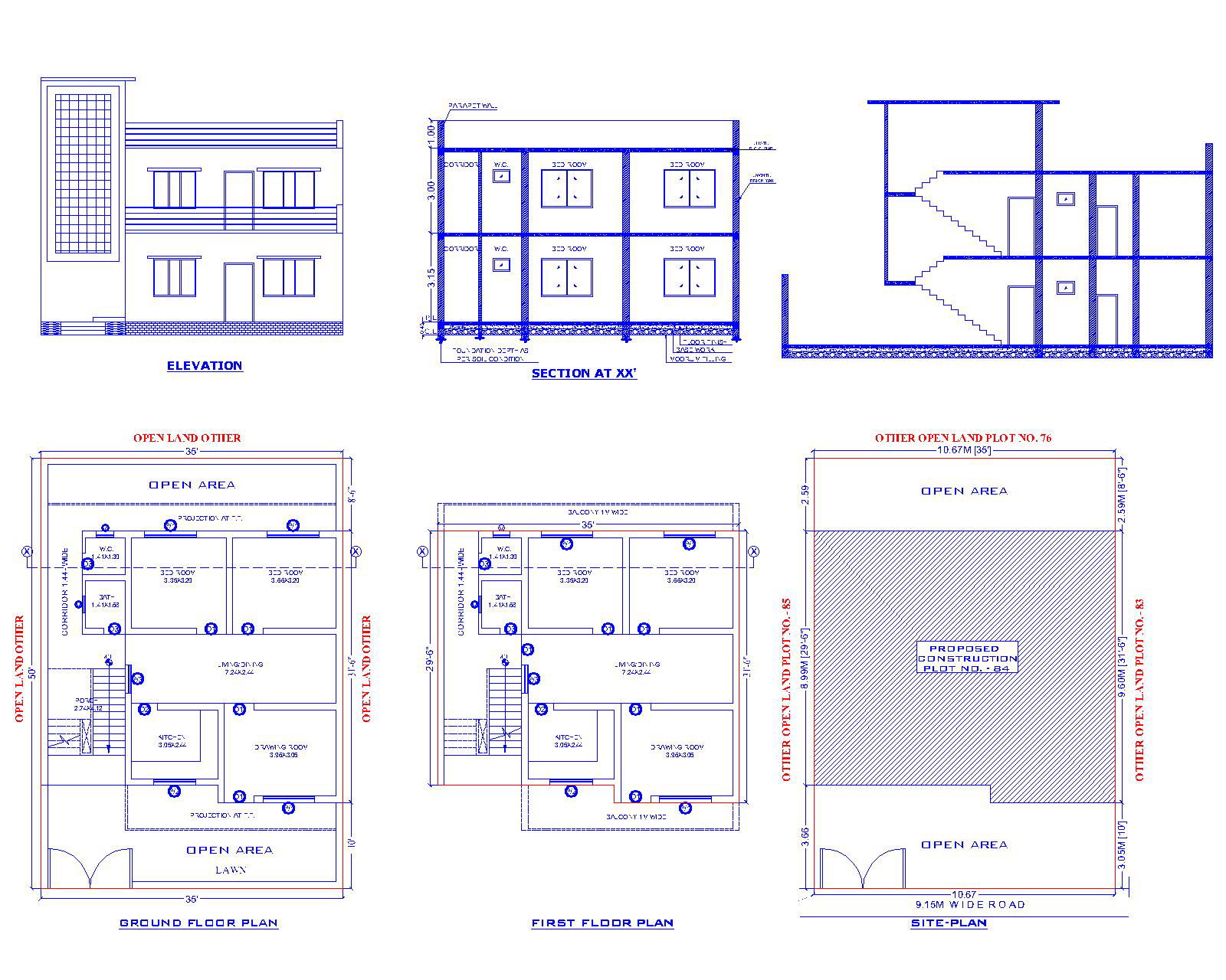 Submission Residential Plan and Elevation Design DWG file. The architecture layout plan of the ground floor plan and first-floor plan, section plan and elevation design of Submission Residential project detail.