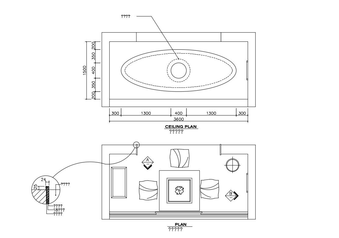House balcony ceiling plan and plan with furniture layout cad drawing details dwg file