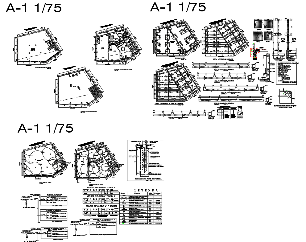 Foundation plan, staircase, beam schedule and construction details of building dwg file