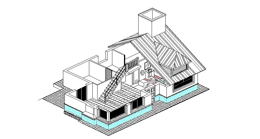 One family bungalow isometric elevation cad drawing details dwg file