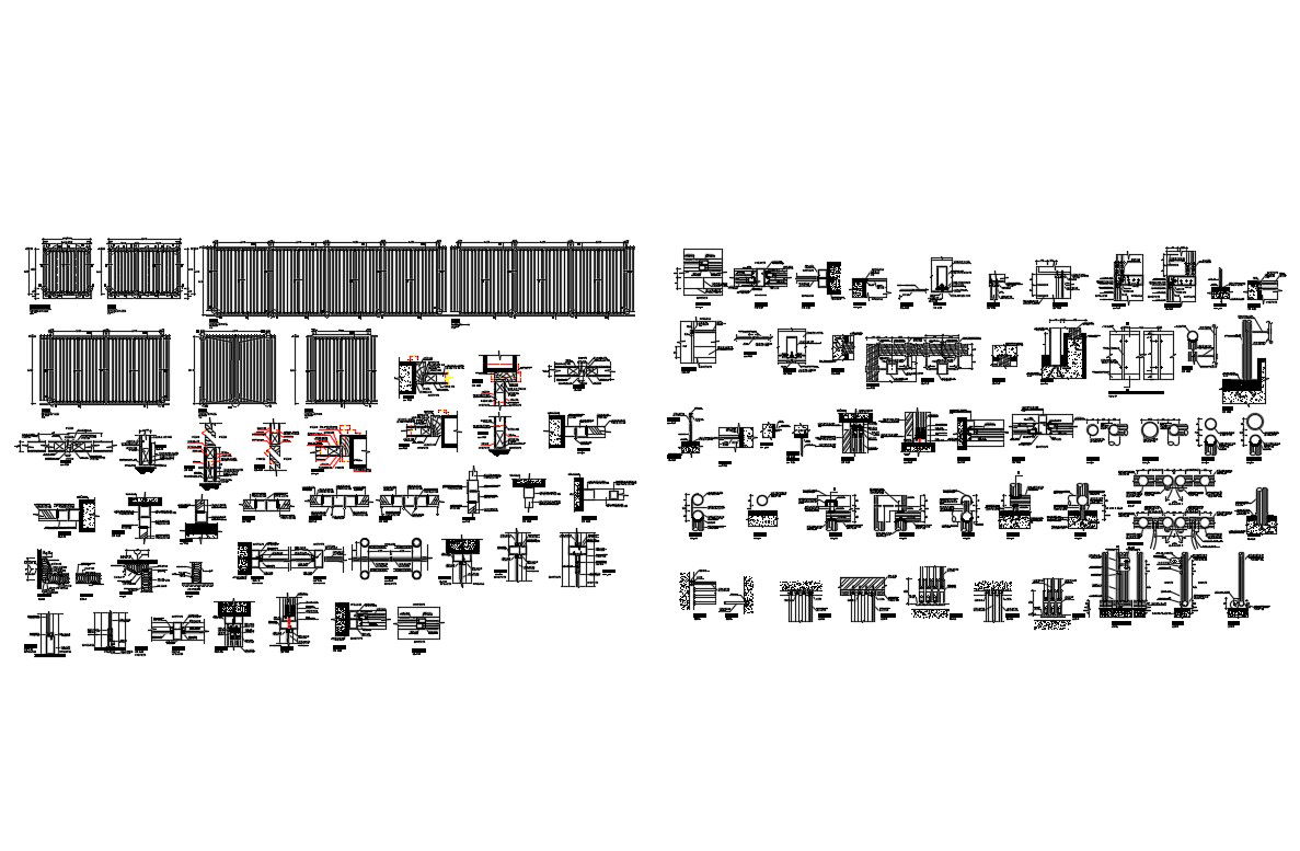 Wooden furniture, doors and windows and car pantry details that includes a detailed view of welded plate for grappling the clamp, door elevation details, door section details, double swing handle (with placement accessories), reinforcement rib, expanded metal, ceramic block, ceramic, block, lintel 2 irons, wood cap, frame and much more of car pantry details.