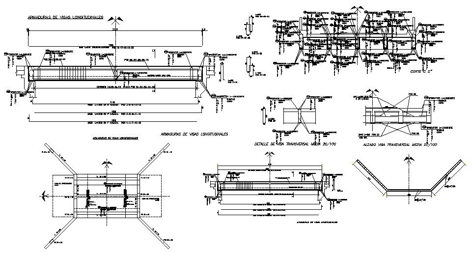 Bridge elevation, section and construction details that includes a detailed view of detail of the remate (above alero), parapet detail, detail of the parapet and the garnish, reinforced concrete posts, galvanized steel sheet defense, detail of the garnish, detail of the board, lid detail, list of rods, generalities details, dimensions details, specifications details,materials details, welding, concrete details, reinforcing steel, construction procedures, parapet, pilaster, garrison, elevation and section details and much more of bridge details.