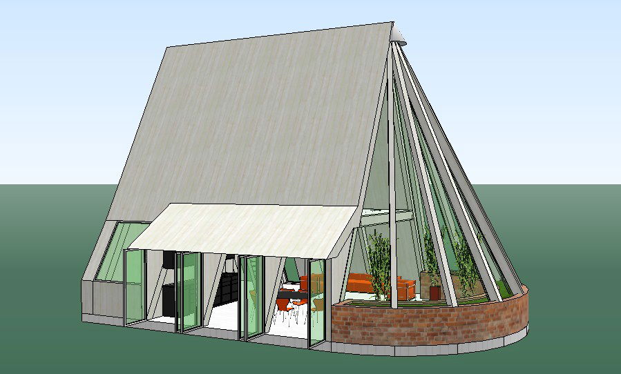 Creative tent house 3d design cad drawing details that includes a detailed view of doors and windows view, staircase view, balcony view, wall design, dimensions, roof, colors details and much more of house details.