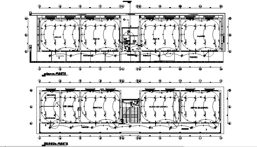 Ground and first floor electrical layout plan details of school that includes a detailed view of power layout details, lighting layout details, computation and schedule of loads, general notes and specifications, panel board details, riser diagram, convienence details, legends and electric equipment details, cable details, dimensions details and much more of electrical installation details.