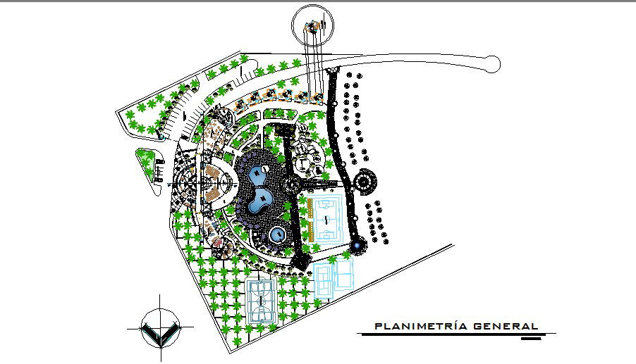 General planimetry details of luxuries hotel with landscaping dwg file
