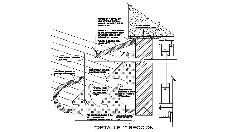 Constructive section details of one family house that includes a detailed view of flooring view, wall construction, memory of materials, footings details, column view, beam construction, covers closure type, soil burried wall closure , exterior solera, holes, interior partition, granite veneer of the country with steel supports, halfeneisen type, Brick partition, plaster plastering, Concrete wall and much more of section details.